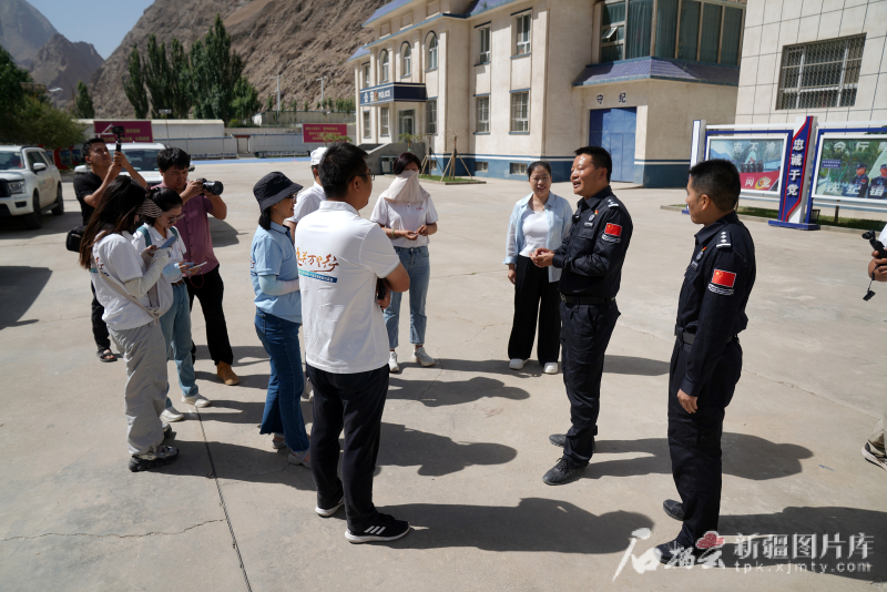 7月6日,“邊關萬里行——自治區(qū)成立70周年大型全媒體采訪活動”南線團隊采訪新疆出入境邊防檢查總站喀什邊境管理支隊庫地邊境檢查站的戍邊故事。