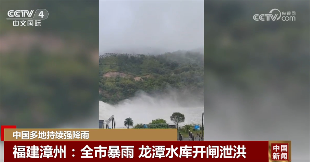 福建漳州:全市暴雨 龍?zhí)端畮?kù)開閘泄洪