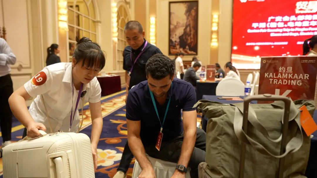 最早,當?shù)刈龅氖遣剂喟梅b廠的邊角料拼的。如今,產(chǎn)品已從最初的手提包、布袋,升級為拉桿箱、背包等。有的帶水杯架,甚至還能自己稱重、有充電USB接口……