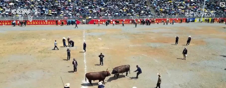 在位于四川涼山的普格縣,傳統(tǒng)點火儀式拉開了當?shù)叵盗谢顒拥男蚰?,傳統(tǒng)歌舞千人朵洛荷驚艷四方。身著五彩彝繡盛裝的姑娘們手持黃傘,隨悠揚旋律翩躚起舞。斗牛比賽在普格縣火把廣場上演巔峰對決,強壯的公牛的每一次抵角、閃躲都引得現(xiàn)場一片歡呼。