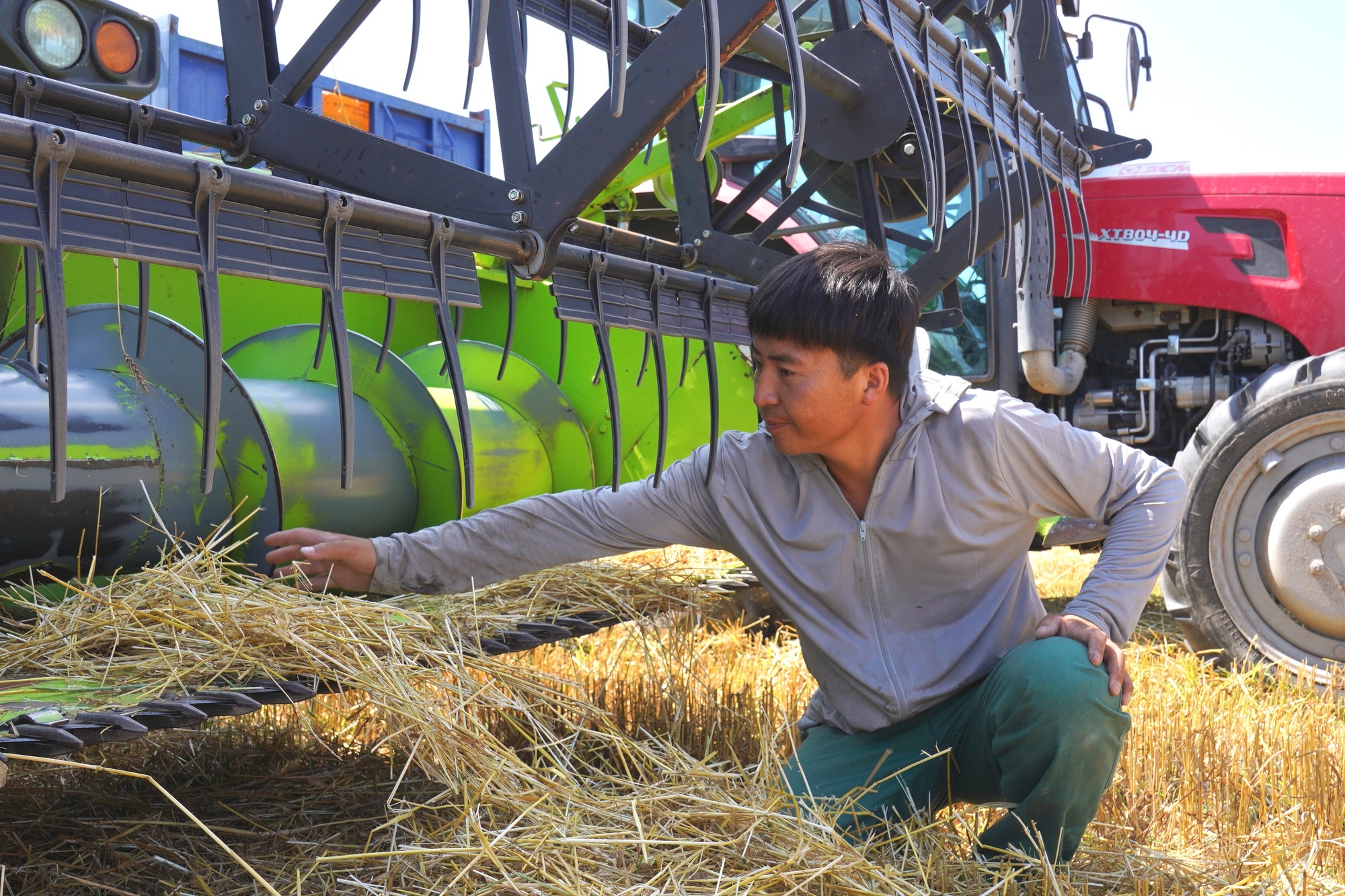機(jī)械化收割小冰麥 (央廣網(wǎng)發(fā) 潘晟昱 攝)