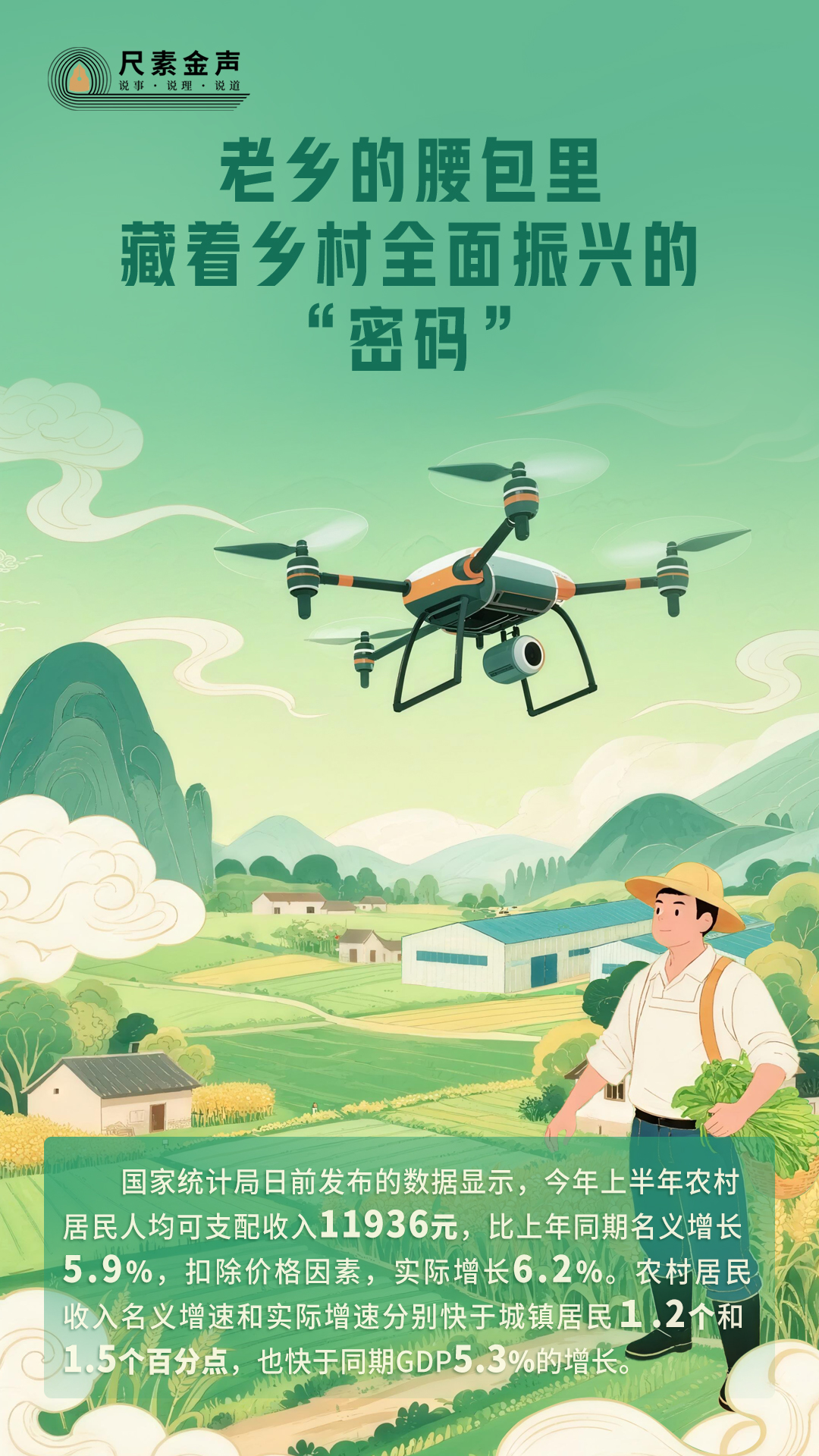 今年上半年農(nóng)民收入數(shù)據(jù)中還有一個值得關(guān)注,就是城鄉(xiāng)居民人均可支配收入之比由上年同期的2.45降至2.42。城鄉(xiāng)融合發(fā)展,要持續(xù)縮小城鄉(xiāng)居民收入差距,關(guān)鍵在于持續(xù)提高農(nóng)村居民收入。推動農(nóng)民收入持續(xù)穩(wěn)定增長,不僅有助于促進(jìn)共同富裕,也有助于暢通城鄉(xiāng)經(jīng)濟(jì)循環(huán)。