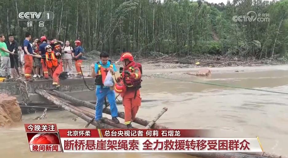 北京懷柔:斷橋懸崖架繩索 全力救援轉移受困群眾