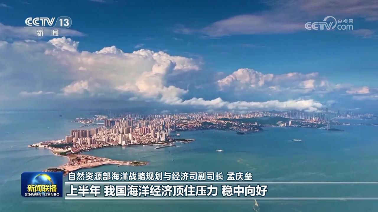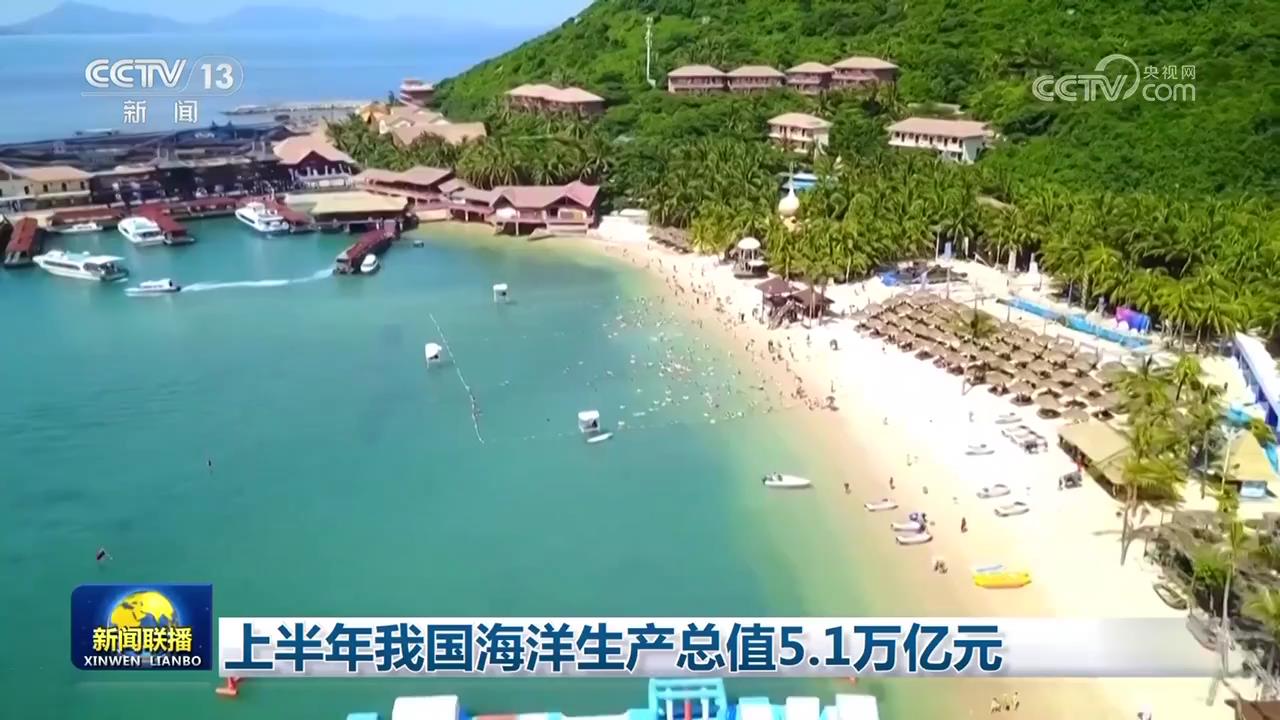 央視網(wǎng)消息(新聞聯(lián)播):記者從自然資源部了解到,上半年,我國(guó)海洋經(jīng)濟(jì)穩(wěn)中向好,初步核算,海洋生產(chǎn)總值5.1萬(wàn)億元,同比增長(zhǎng)5.8%。