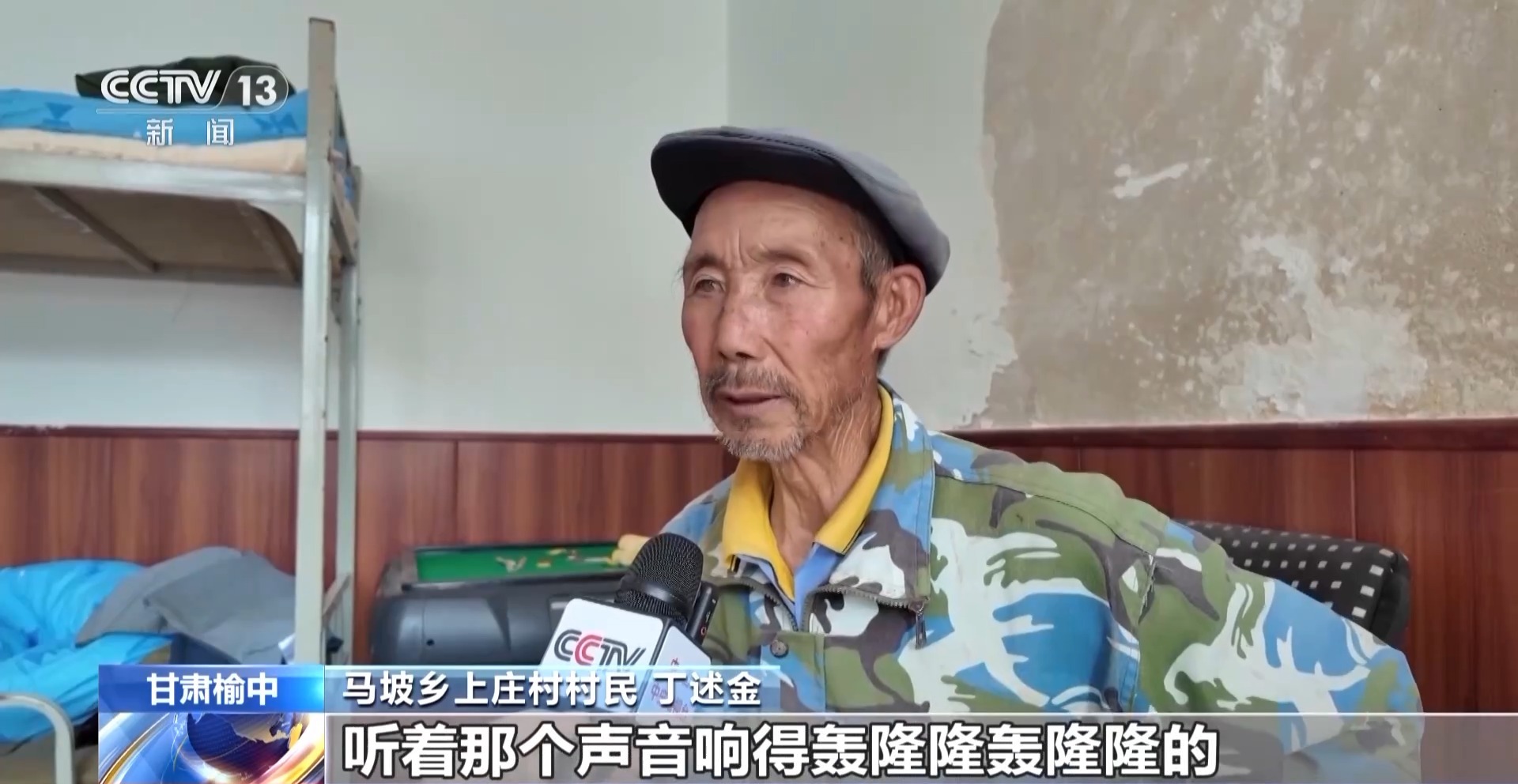 馬坡鄉(xiāng)上莊村村民 丁述金:我們是老兩口。我想轉(zhuǎn)移卻不敢走,聽著那個聲音響得轟隆隆轟隆隆的,聲音大得很,不敢出去了。他們就把我們喊著叫上,一把拉上就出來了。