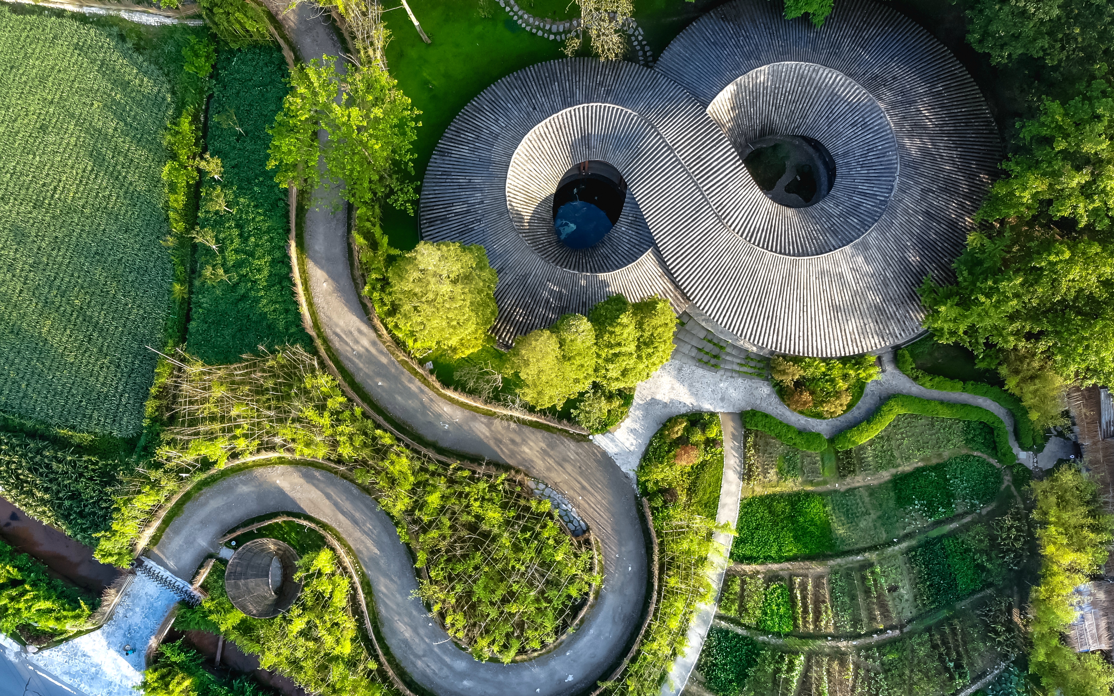 日暮時(shí)分,竹藝村的地標(biāo)性建筑“竹里”被覆上一層金輝。從空中俯瞰這個(gè)坐落在竹藝村的“網(wǎng)紅”建筑,形狀如同數(shù)學(xué)符號(hào)中代表無窮的“∞”。竹文化無窮,竹編路無限,讓人不禁期待竹藝村更加精彩的未來……