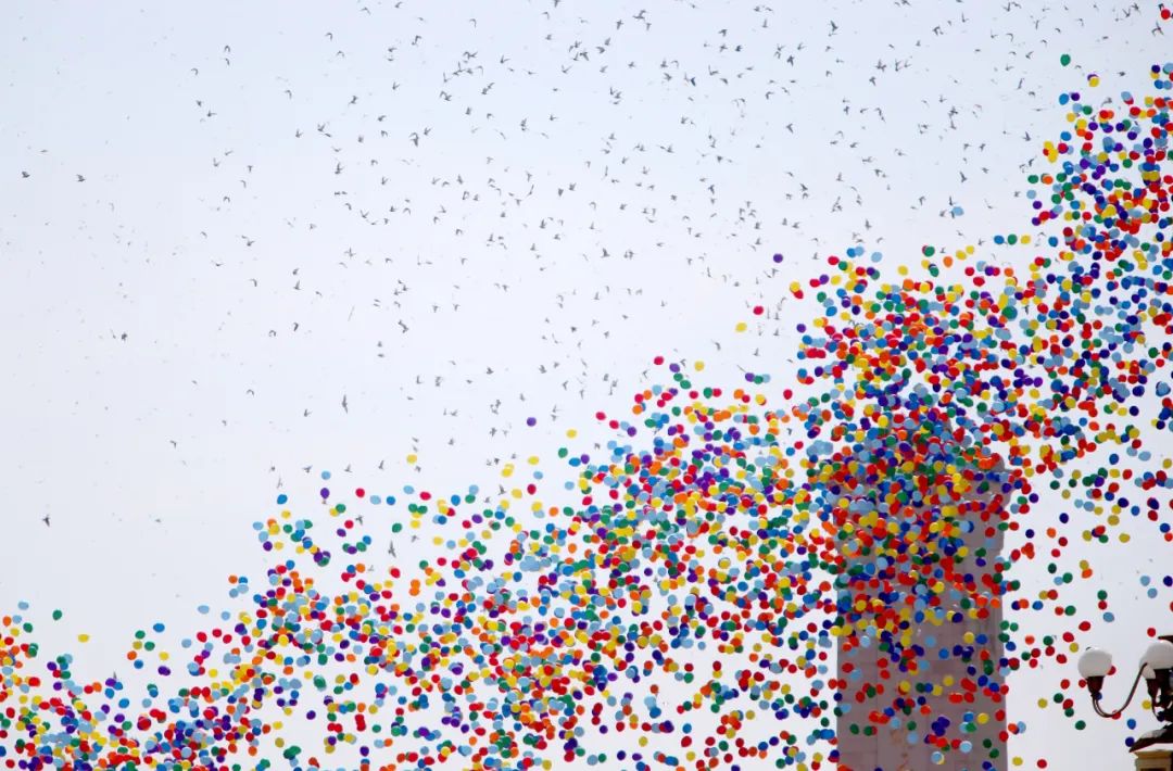 2015年9月3日,中國(guó)人民抗日戰(zhàn)爭(zhēng)暨世界反法西斯戰(zhàn)爭(zhēng)勝利70周年紀(jì)念大會(huì)在北京隆重舉行。這是紀(jì)念大會(huì)現(xiàn)場(chǎng)放飛氣球和白鴿。新華社記者 張加揚(yáng) 攝