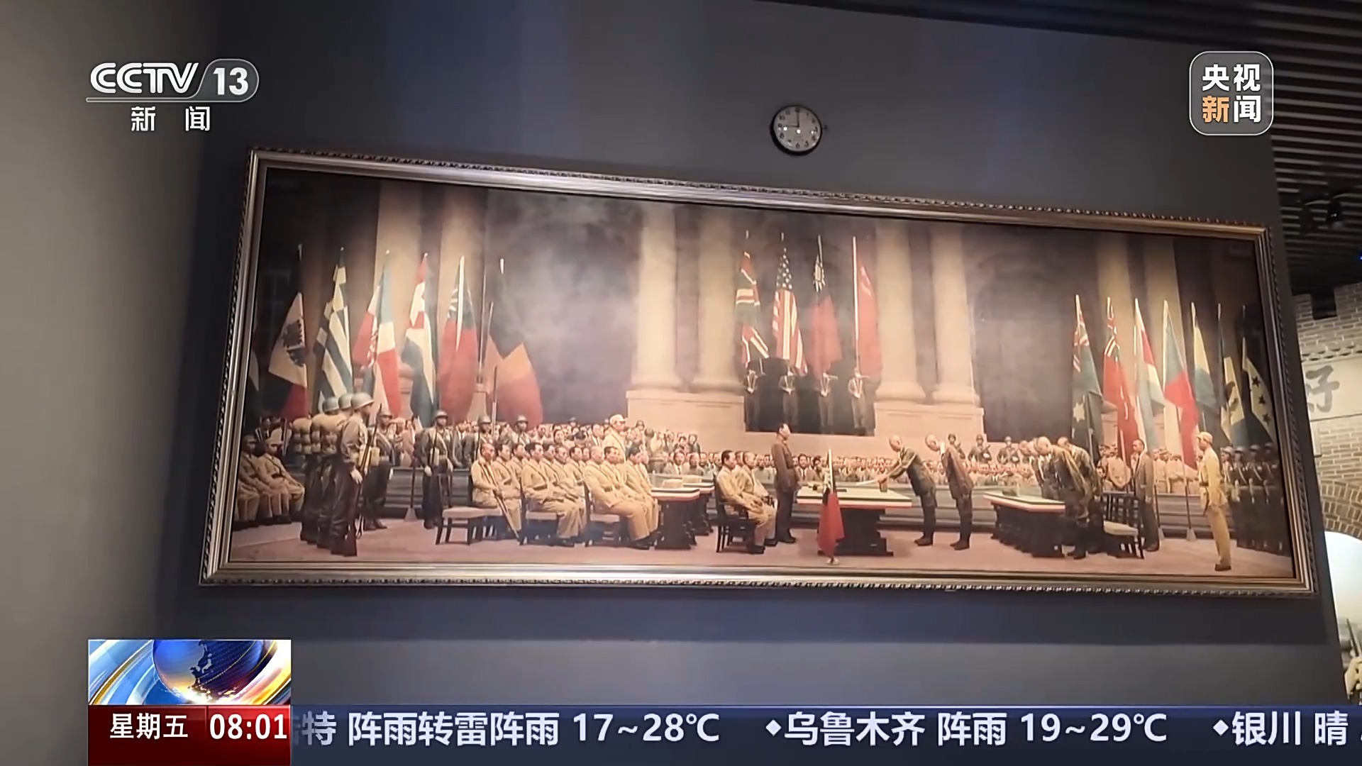 中國人民抗日戰(zhàn)爭紀(jì)念館展覽陳列部副主任 韓小昆:左側(cè)畫面有個(gè)角落,有一把空白的椅子是沒有畫人物的。整個(gè)作品形象里面有200多個(gè)人,但唯獨(dú)空了一把椅子。這是基于歷史進(jìn)行的藝術(shù)創(chuàng)作,就是說,在戰(zhàn)爭中犧牲的英烈們也參加了這個(gè)受降儀式。