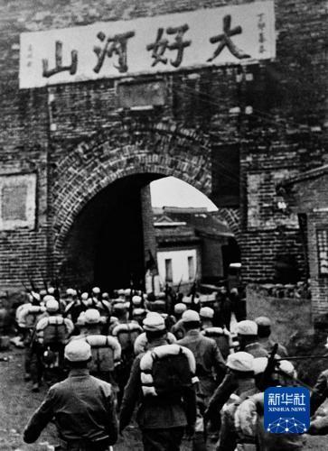 1945年,收復(fù)山海關(guān)的八路軍列隊通過城樓。張進學(xué) 攝