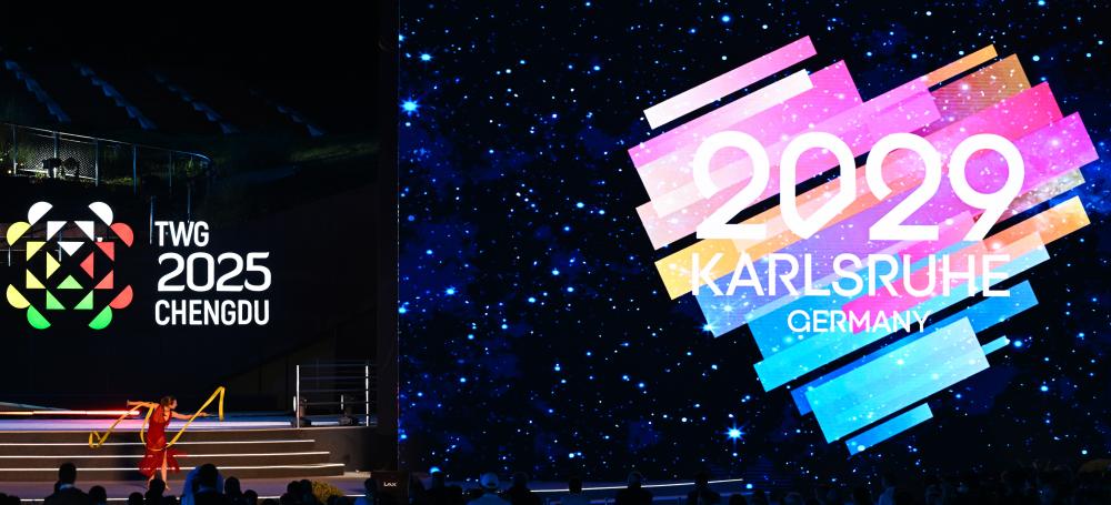 成都世運(yùn)會(huì)組委會(huì)主席施小琳、國(guó)際世界運(yùn)動(dòng)會(huì)協(xié)會(huì)主席何塞·佩魯雷納先后致辭,向?yàn)楸緦檬肋\(yùn)會(huì)圓滿成功作出貢獻(xiàn)的所有人員表示感謝。下屆世運(yùn)會(huì)舉辦城市德國(guó)卡爾斯魯厄市市長(zhǎng)弗蘭克·門特魯普致辭,熱情邀請(qǐng)全球賓客四年后相聚卡爾斯魯厄。