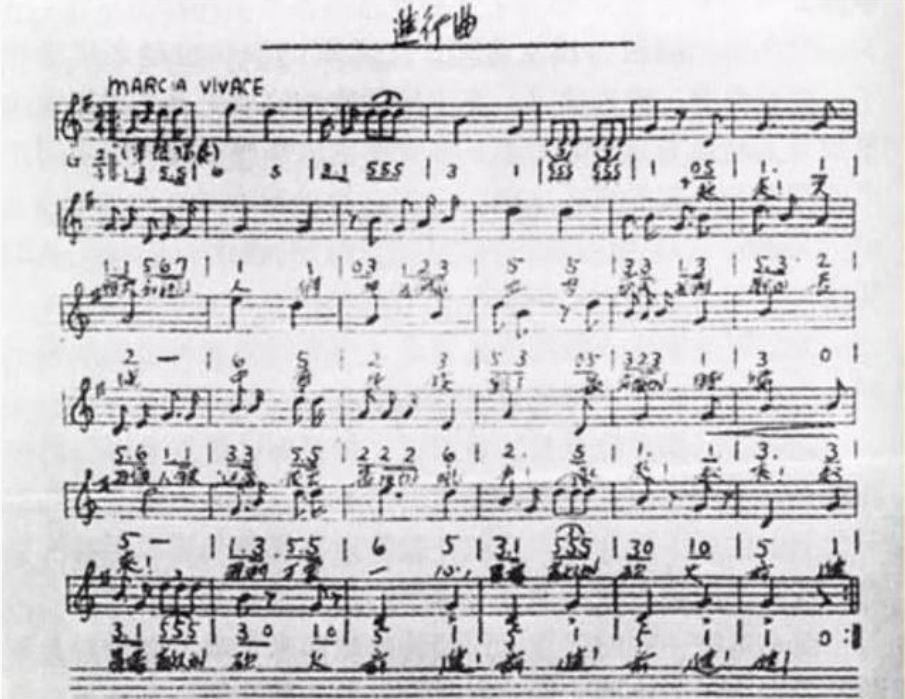 聶耳譜寫(xiě)的《義勇軍進(jìn)行曲》手稿
