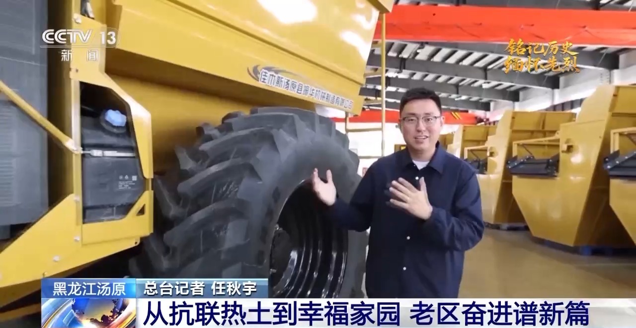 總臺記者 任秋宇:我的身高是185cm,我身邊的輪胎幾乎和我一樣高,這臺機械是湯原縣一家機械制造企業(yè)自主研發(fā)的大型鮮食玉米收割機。以往鮮食玉米的收割,主要依靠人工和小型的機械,像這么大的收割機,因為技術(shù)“卡脖子”的原因只能依賴進口。而這家企業(yè)通過自主研發(fā),解決了技術(shù)上的難題,這臺機械正在試驗階段,明年就能上市了。
