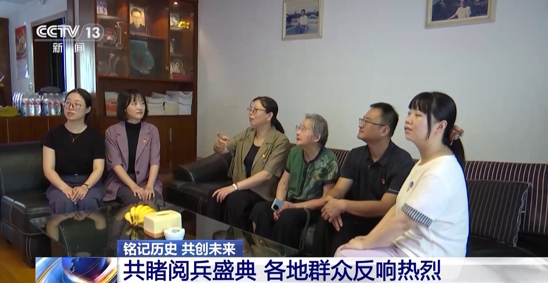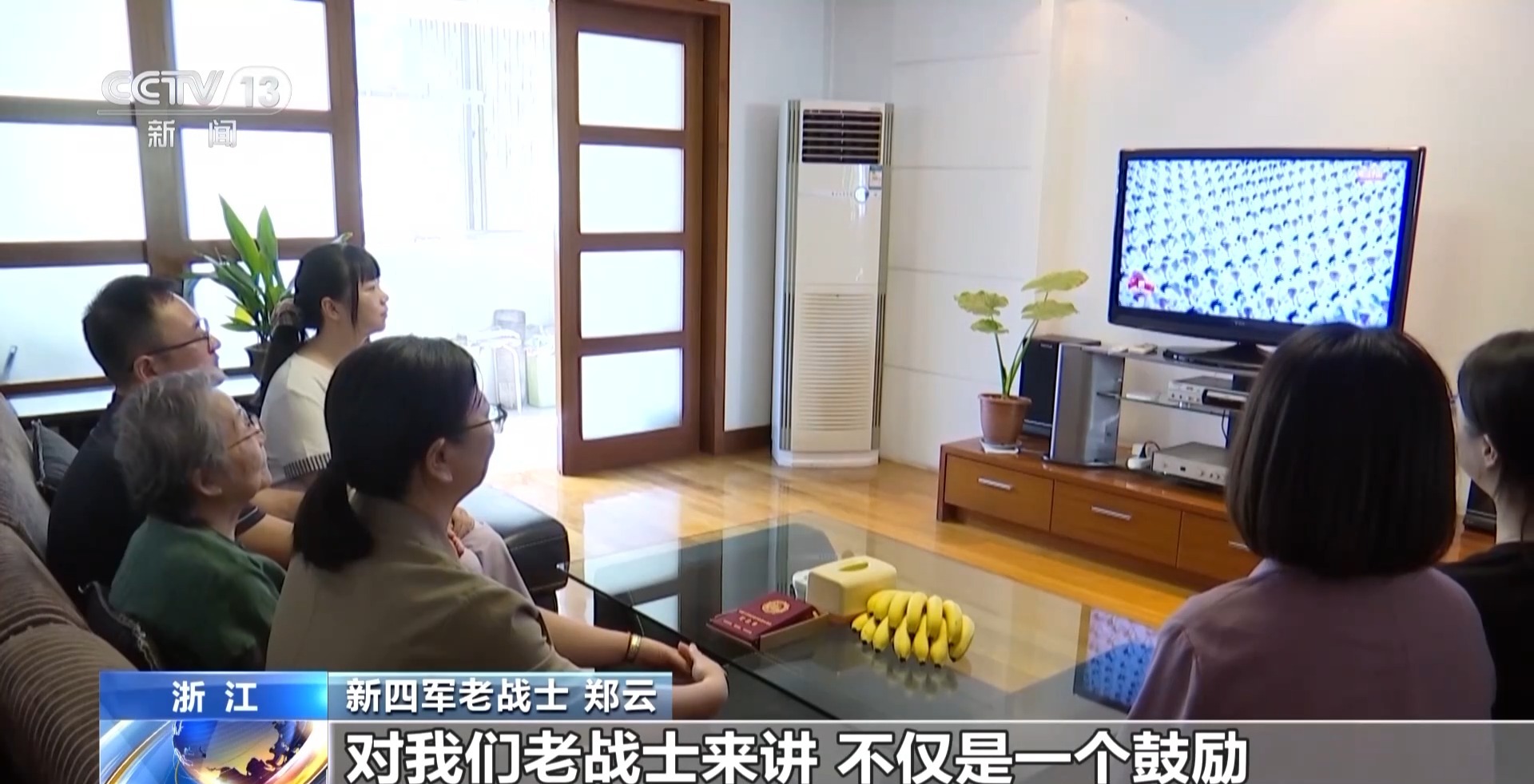 在浙江湖州93歲新四軍老戰(zhàn)士鄭云的家中,社區(qū)工作人員與鄭云老人一起收看大會(huì)直播,鄭云曾先后參加過(guò)抗日戰(zhàn)爭(zhēng)、解放戰(zhàn)爭(zhēng),看完此次閱兵,她感觸頗深。