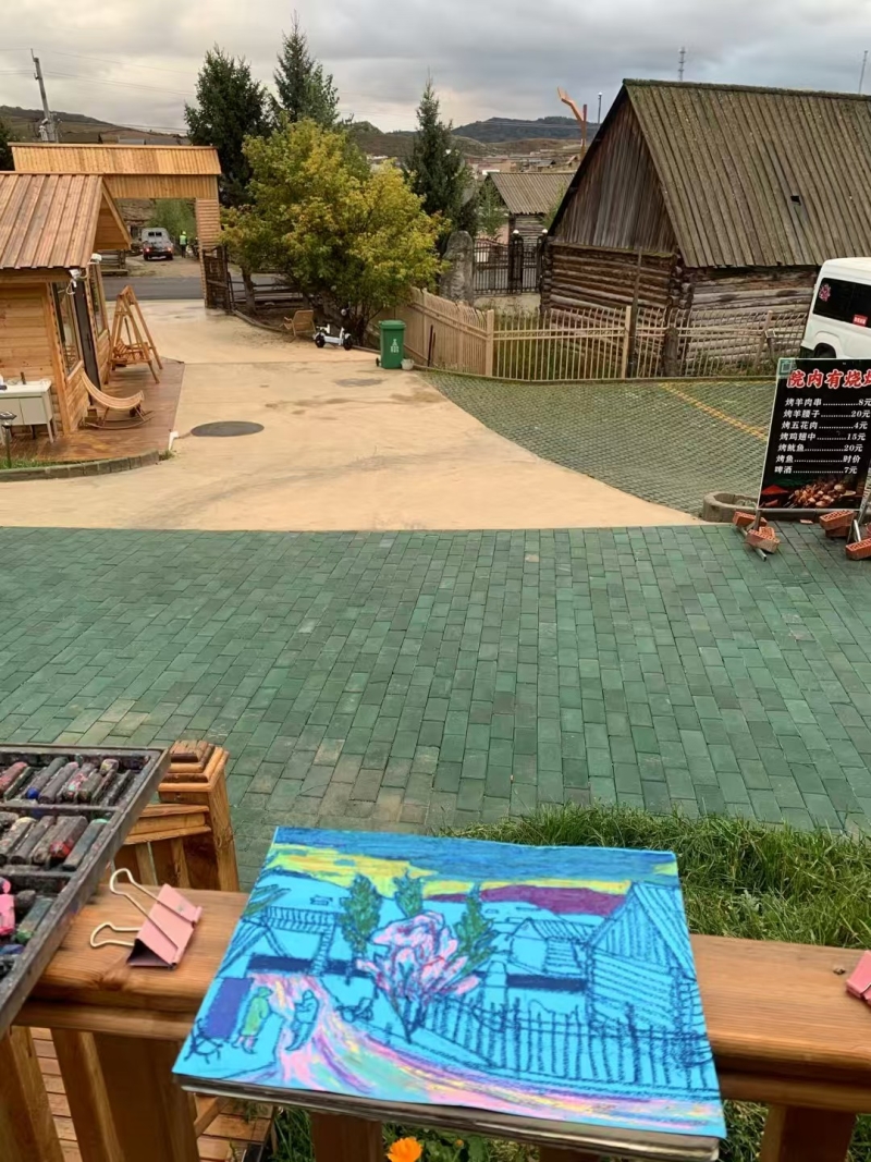 夕陽西下,余暉為鐵熱克提鄉(xiāng)染上一層溫暖金色。正值“丹青墨彩助力鄉(xiāng)村振興”全國名家赴阿勒泰地區(qū)采風(fēng)寫生活動(dòng)在此開展,新疆畫院畫家徐江峰立于村頭,畫板上木屋錯(cuò)落、遠(yuǎn)山如黛,“這些木屋依地勢而建,高低起伏,極富節(jié)奏,是最入畫的題材。它們不僅體現(xiàn)人與自然的和諧,更承載著這片土地團(tuán)結(jié)向上的生活氣息?!?/p>