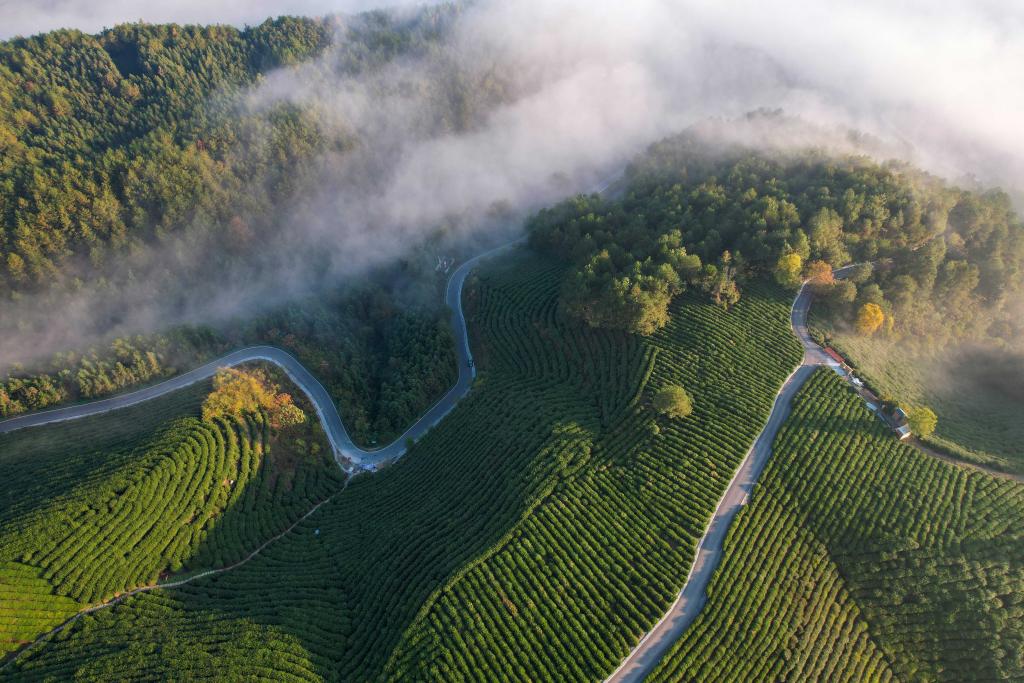 2024年11月8日拍攝的位于安徽省宣城市旌德縣三溪鎮(zhèn)的農(nóng)村公路(無人機照片)。新華社記者 曹力 攝