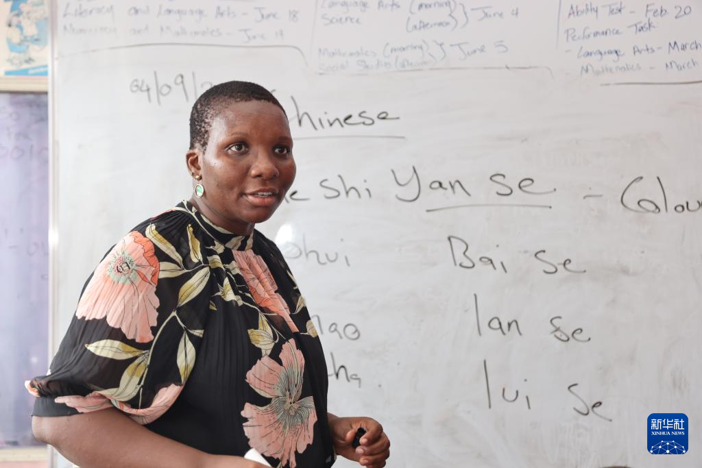 在牙買加首都金斯敦的一間教室里,艾特特殊教育小學(xué)校長娜塔莎·拉塞爾在黑板上書寫著與顏色相關(guān)的漢字,孩子們端坐在椅子上,跟隨她輕聲朗讀。教室里時(shí)而響起整齊的讀書聲,時(shí)而響起輕快的中文歌曲旋律。