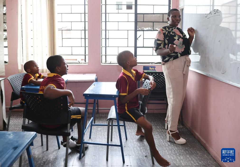 9月4日,在牙買加首都金斯敦艾特特殊教育小學(xué),校長娜塔莎·拉塞爾在授課。新華社記者 李夢(mèng)馨 攝