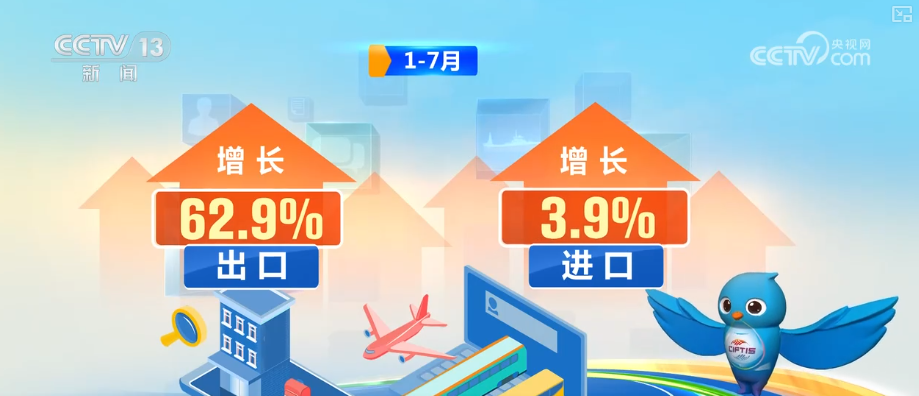 2025年,我國服務(wù)貿(mào)易穩(wěn)步增長,旅行服務(wù)出口增長最快。1—7月,旅行服務(wù)進出口達(dá)12594.6億元,增長10.4%。其中,出口增長62.9%、進口增長3.9%。