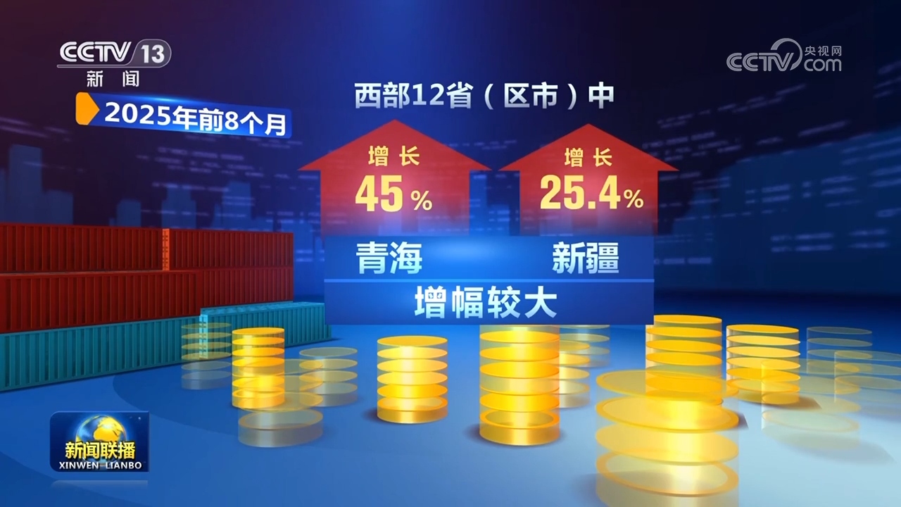 西部12省區(qū)市中,青海、新疆增幅較大,分別增長45%、25.4%。
