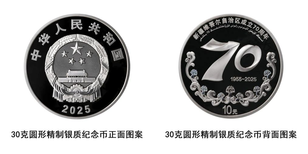 記者9月16日從中國人民銀行獲悉,中國人民銀行定于9月19日發(fā)行新疆維吾爾自治區(qū)成立70周年金銀紀念幣一套。該套金銀紀念幣共2枚,其中金質紀念幣1枚,銀質紀念幣1枚,均為中華人民共和國法定貨幣。