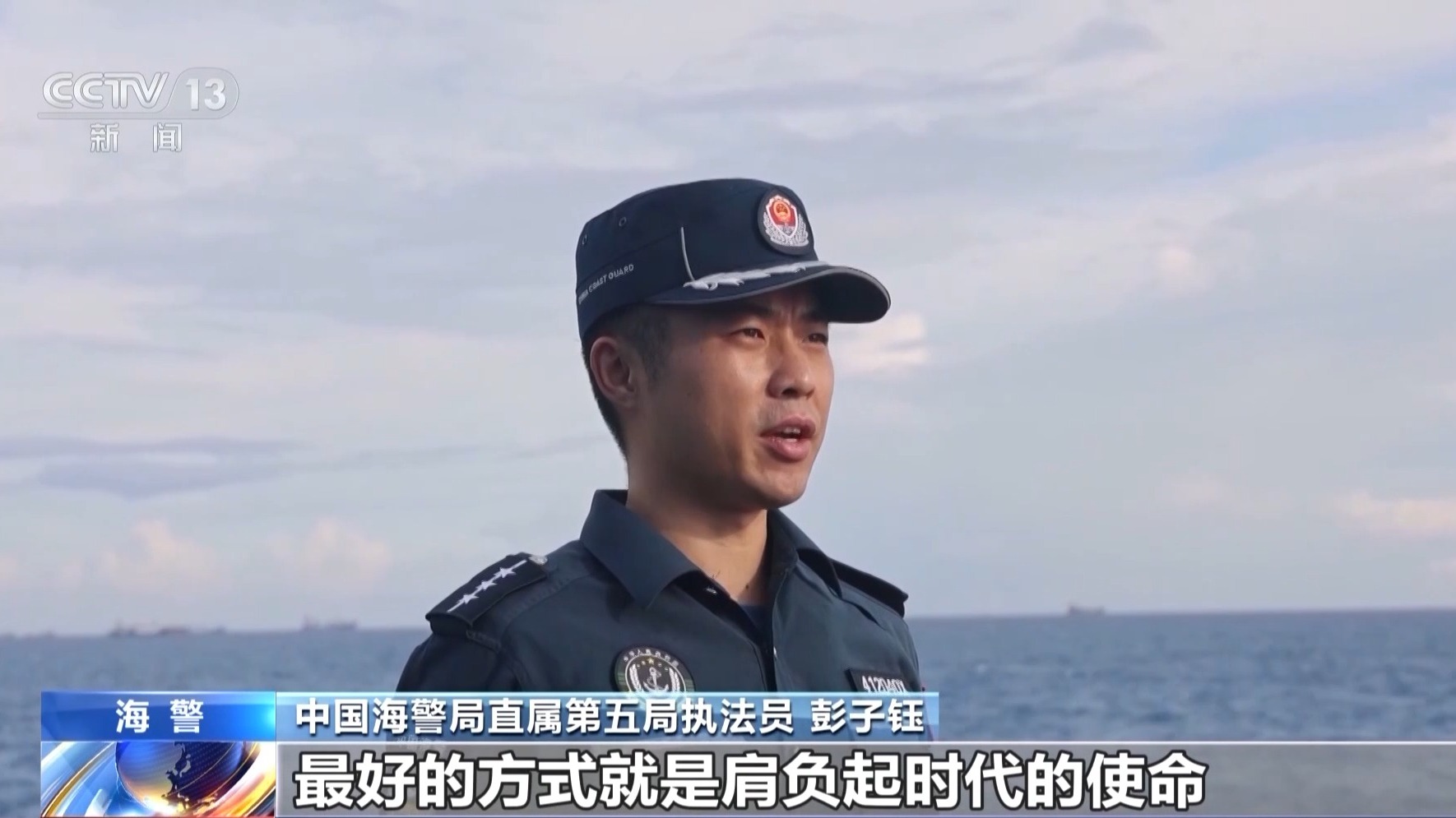 中國海警局直屬第五局執(zhí)法員 彭子鈺:紀念九一八,最好的方式就是肩負起時代的使命。我們堅守在海上維權執(zhí)法第一線,就是要用實際行動告慰先烈:祖國的萬里海疆,有我們在,請人民放心!