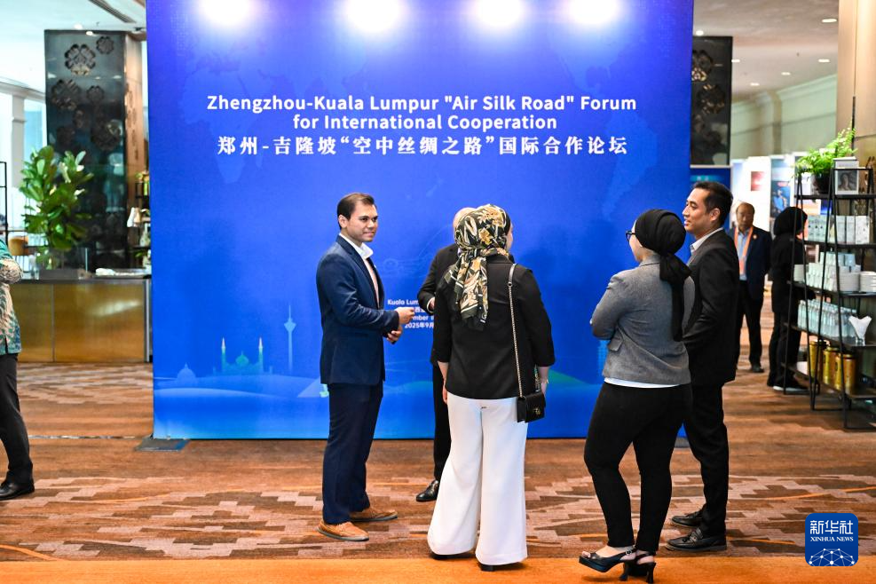 9月18日,馬來西亞吉隆坡國際機(jī)場舉行的鄭州-吉隆坡“空中絲綢之路”國際合作論壇開始前,嘉賓們?cè)跁?huì)場外交流。新華社記者 程一恒 攝