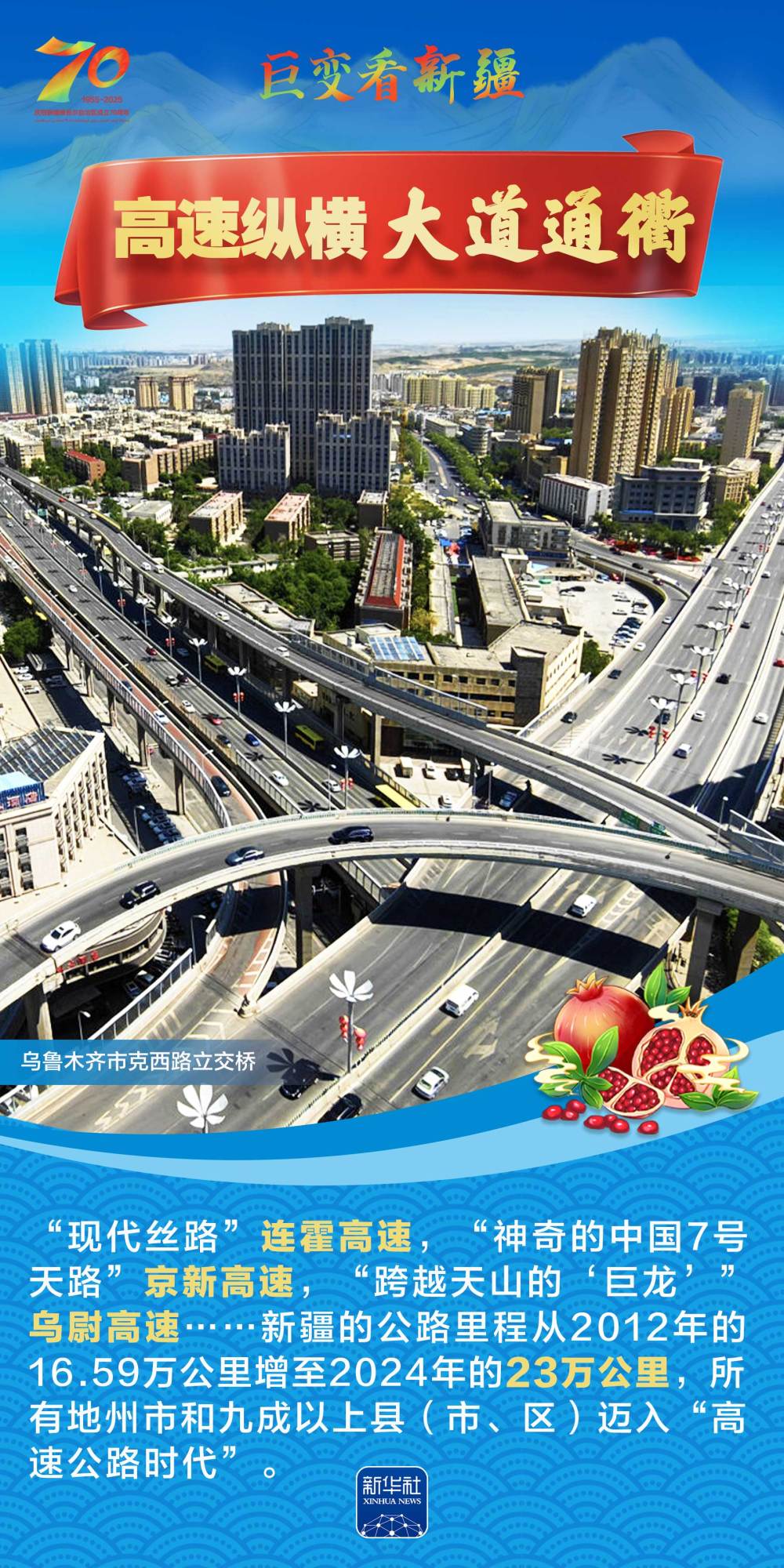今年是新疆維吾爾自治區(qū)成立70周年。70年來,新疆的交通建設(shè)日新月異。從駝鈴聲聲、馬蹄嘚嘚到鐵流縱橫、銀鷹高翔,一座座交通樞紐輻射四方,一條條“鋼鐵巨龍”蜿蜒逶迤,一個(gè)個(gè)支線機(jī)場星羅棋布,現(xiàn)代化的新疆立體交通網(wǎng)絡(luò)日益形成。讓我們跟隨這組海報(bào),一起見證穿越“三山兩盆”、貫通歐亞大陸的新時(shí)代新疆交通畫卷。
