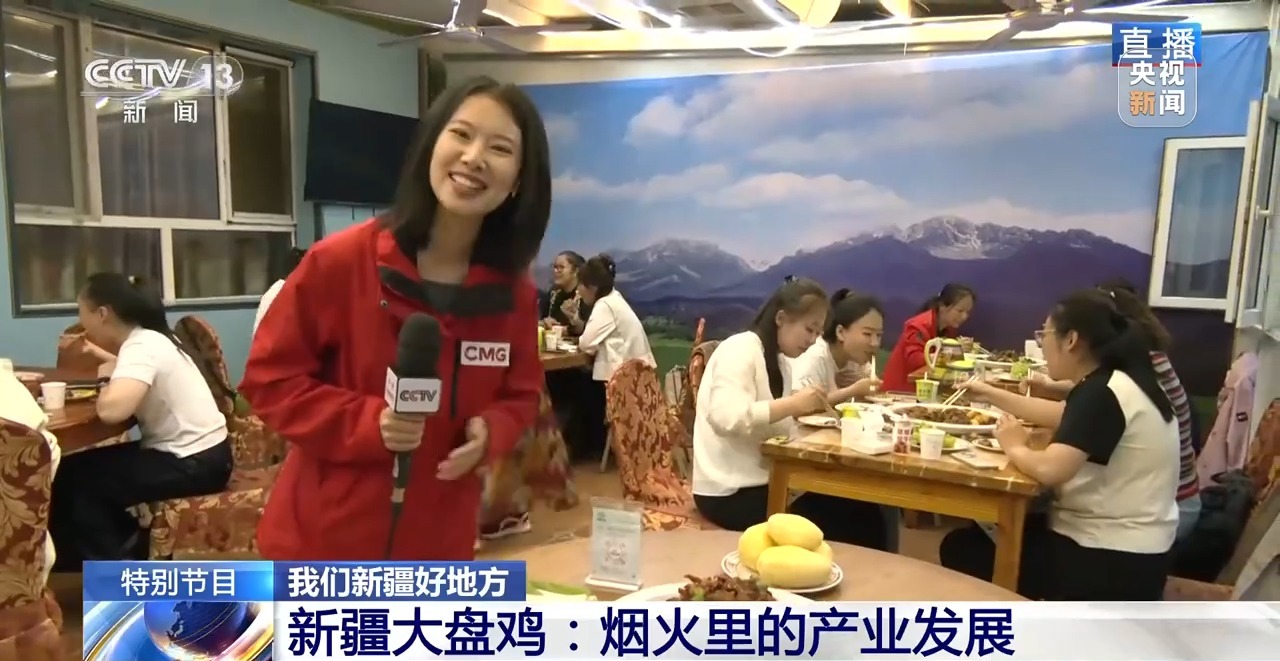 說完了主角,再來說說配菜。這里面的土豆來自博爾通古鄉(xiāng)。最關(guān)鍵的辣椒,是當(dāng)?shù)氐闹饕r(nóng)作物,來自“辣椒之鄉(xiāng)”安集海鎮(zhèn)。過去這里的辣椒只是農(nóng)民零散種植,如今已經(jīng)形成了從育種、種植、加工到銷售的完整產(chǎn)業(yè)鏈。這些辣椒不僅給大盤雞“注入靈魂”,也滿足了全國的餐桌需求,還出口到韓國、日本等地。