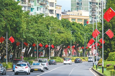 為熱烈慶祝中華人民共和國成立76周年,香港和澳門街頭裝扮一新,處處洋溢著喜慶的節(jié)日氣氛。五星紅旗與港澳區(qū)旗迎風飄揚,祝福標語和慶祝海報在街頭巷尾隨處可見。港澳特區(qū)政府與社會各界攜手推出了一系列豐富多彩的慶?;顒雍蛢?yōu)惠措施。