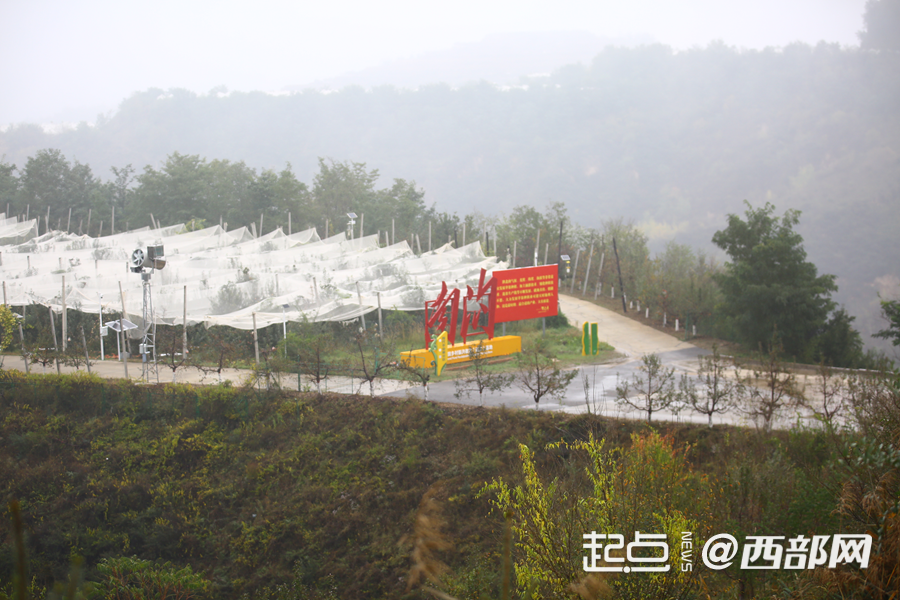 果園搭建的防雹網,防止冰雹打壞蘋果。