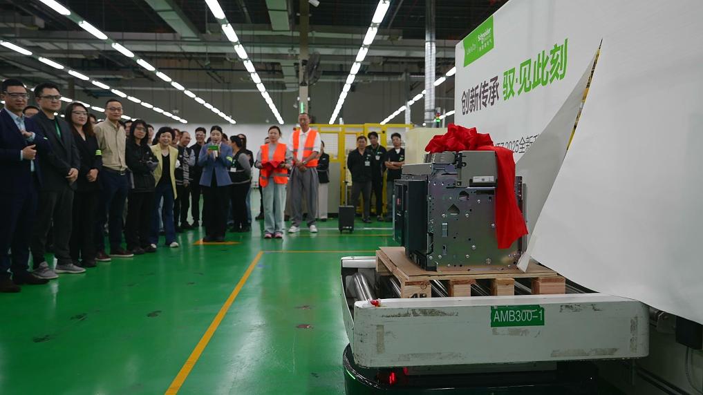 施耐德電氣全新升級(jí)的一款空氣斷路器產(chǎn)品在第八屆進(jìn)博會(huì)現(xiàn)場首秀,并于7日在其上??禈蚬S正式下線。受訪者供圖