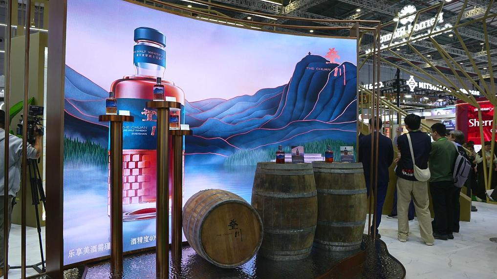 國際知名烈酒集團(tuán)將首款中國原產(chǎn)威士忌疊川放在了展臺(tái)“C位”。受訪者供圖