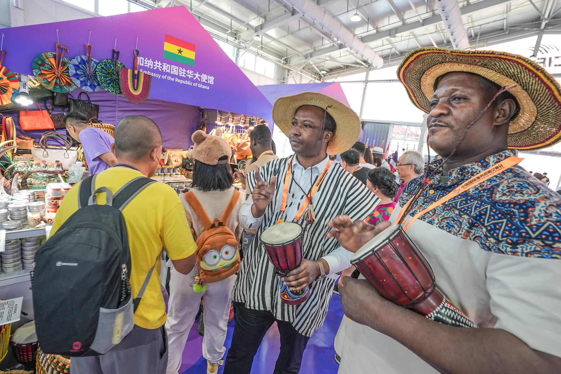 在服貿(mào)會首鋼園展區(qū),外籍展商在現(xiàn)場表演,展示本國文化。武亦彬攝
