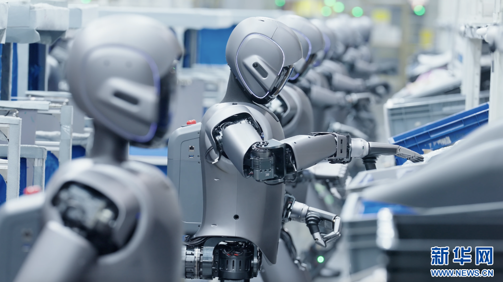 數(shù)十臺(tái)人形機(jī)器人在工廠“實(shí)訓(xùn)”。
