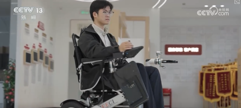 在杭州西湖區(qū),工作人員正在對(duì)眼前這款智能輪椅進(jìn)行技術(shù)升級(jí)。結(jié)合失能老人手腳行動(dòng)不便的痛點(diǎn),這款輪椅搭載了深度相機(jī)和智能機(jī)械臂,通過內(nèi)置的AI算法,使用者只需和平常一樣坐在上面,簡(jiǎn)單用語言表達(dá)需求,輪椅就可以判斷路線,智能移動(dòng)。
