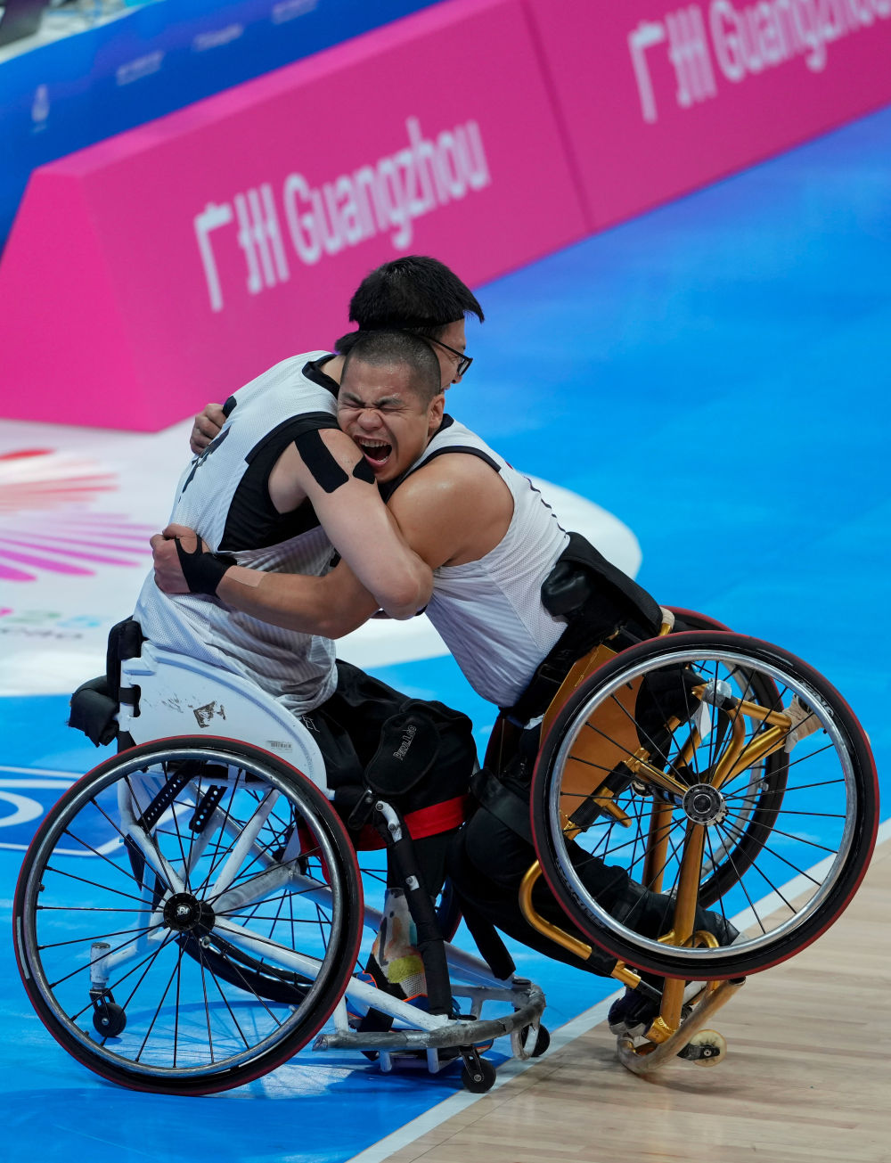 12月8日,在廣州舉行的全國第十二屆殘疾人運(yùn)動會暨第九屆特殊奧林匹克運(yùn)動會輪椅籃球項(xiàng)目男子三人籃球決賽中,遼寧隊13:9戰(zhàn)勝北京隊。新華社記者 吳魯 攝