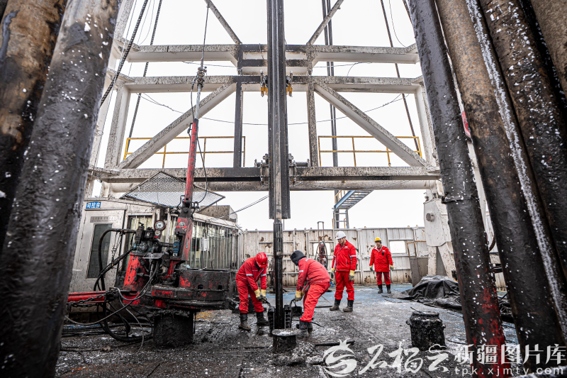 12月8日,中國(guó)石油新疆油田吉慶作業(yè)區(qū)頁(yè)巖油JHW74-33井現(xiàn)場(chǎng)鉆機(jī)轟鳴。徐志遠(yuǎn) 攝