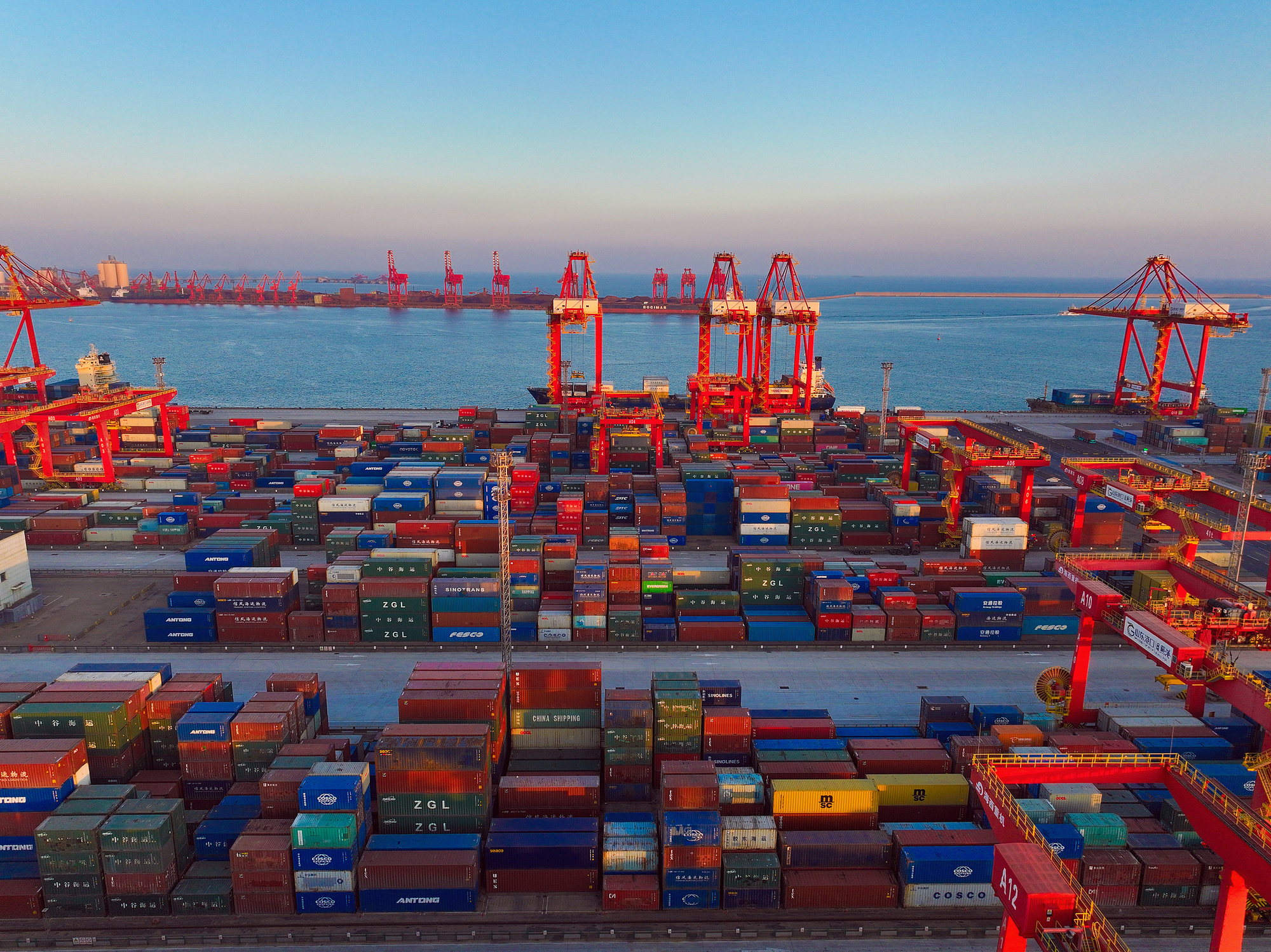 山東港口日照港集裝箱碼頭一派繁忙景象
