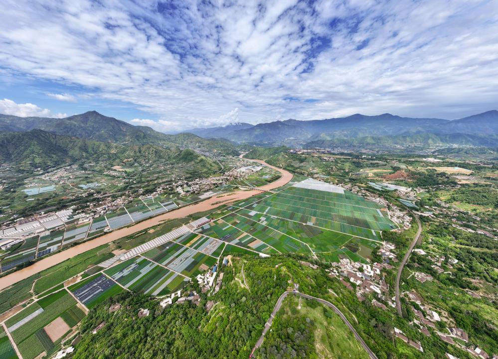 2025年7月9日拍攝的四川省攀枝花市米易縣撒蓮鎮(zhèn)安全村高標準農田(無人機照片)。新華社記者江宏景 攝