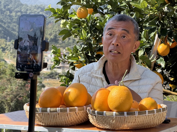 臺灣嘉義的王文瑞在祖籍地——江西贛州直播推介贛南臍橙,他的“臺灣阿公”新媒體賬號吸引全網超100萬粉絲關注。新華社記者 陳柱佐 攝