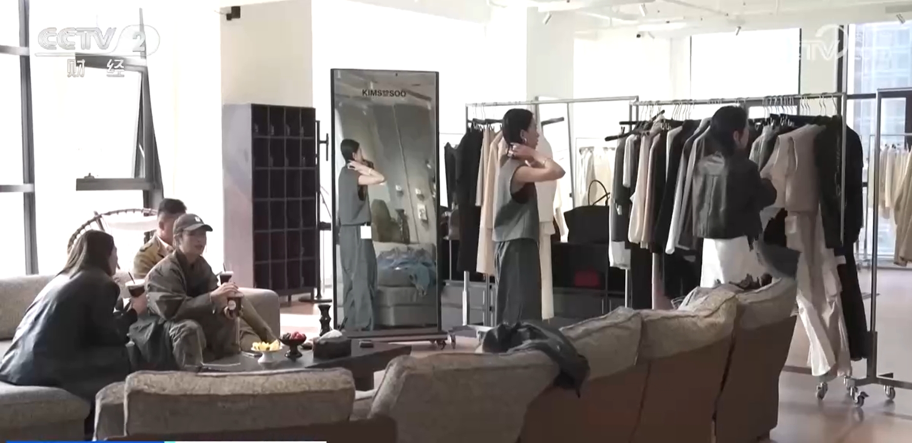 歲末特惠明顯拉動了銷售,在服裝城內(nèi),來自全國各地的批發(fā)商和個(gè)人消費(fèi)者忙著選款,銷售人員一邊介紹款式、一邊快遞打包。