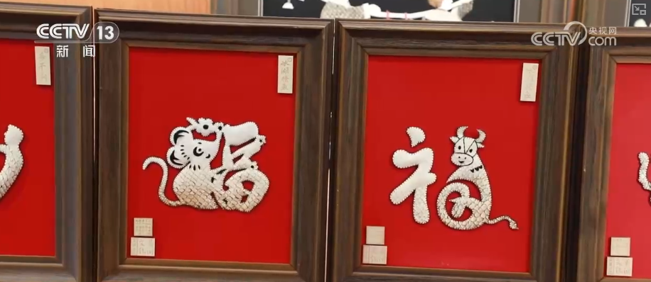 與江南魚燈相映成趣的,是扎根黑土地的吉林省級非遺——查干湖魚皮制作技藝。在“禮遇吉林”非遺體驗店,魚皮經(jīng)洗料、鞣制、剪刻、拼貼等工序,變身充滿民族風情的精美藝術(shù)品。
