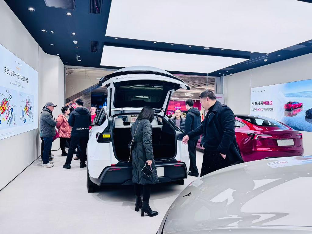 2026年1月6日,市民在武漢武昌萬象城內(nèi)一家特斯拉門店看車。新華社記者 龔聯(lián)康 攝