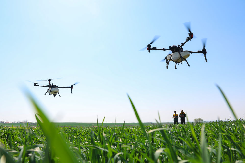 2025年3月20日,在湖北省棗陽市七方鎮(zhèn)大房村麥田里,棗陽市順輝農(nóng)機專業(yè)合作社技術(shù)人員操作無人機進行植保作業(yè)。新華社發(fā)(楊東攝)