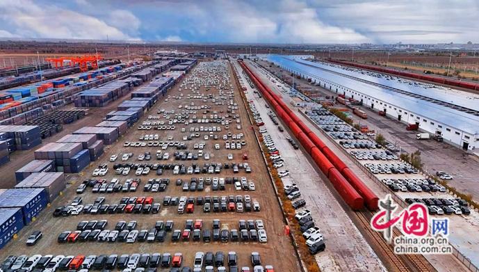 高頻通行,助推樞紐能級(jí)躍升。新疆位處西北邊境,雖物產(chǎn)豐富,以往受限于地理位置,難以充分參與國際貿(mào)易。但隨著共建“一帶一路”深入推進(jìn),中歐班列飛速興起,霍爾果斯鐵路口岸站逐漸成為班列西通道的關(guān)鍵節(jié)點(diǎn)。目前,該口岸中歐(中亞)班列日均通行量在27列以上,平均每2小時(shí)完成一列入境返程中歐班列的換裝工作,其與阿拉山口口岸站共同貢獻(xiàn)了全國五成以上的中歐班列通行量。隨著班列開行量越來越大,不僅越來越多的日用百貨、機(jī)電設(shè)備、農(nóng)副產(chǎn)品等“中國制造”選擇從新疆鐵路口岸走向中亞、歐洲市場,也吸引了汽車組裝、電子產(chǎn)品加工等產(chǎn)業(yè)在口岸周邊聚集,推動(dòng)“通道經(jīng)濟(jì)”向“口岸經(jīng)濟(jì)”“產(chǎn)業(yè)經(jīng)濟(jì)” 轉(zhuǎn)型,讓新疆正成為輻射亞歐的國際物流與貿(mào)易樞紐。