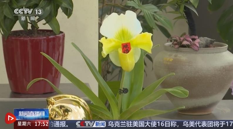 在北京花卉交易中心,各色年宵花爭奇斗艷。其中新品蘭花“兜蘭”十分惹眼,獨(dú)特的兜形花瓣里,被放入“順?biāo)臁薄敖】怠钡淖8?ㄆ?,寓意“兜住順?biāo)臁薄岸底〗】怠保8M滿,年味十足。野生兜蘭原本是珍稀植物,經(jīng)過多年人工馴化,品種產(chǎn)量快速增長,價(jià)格也從最初的近千元降至如今百元左右。