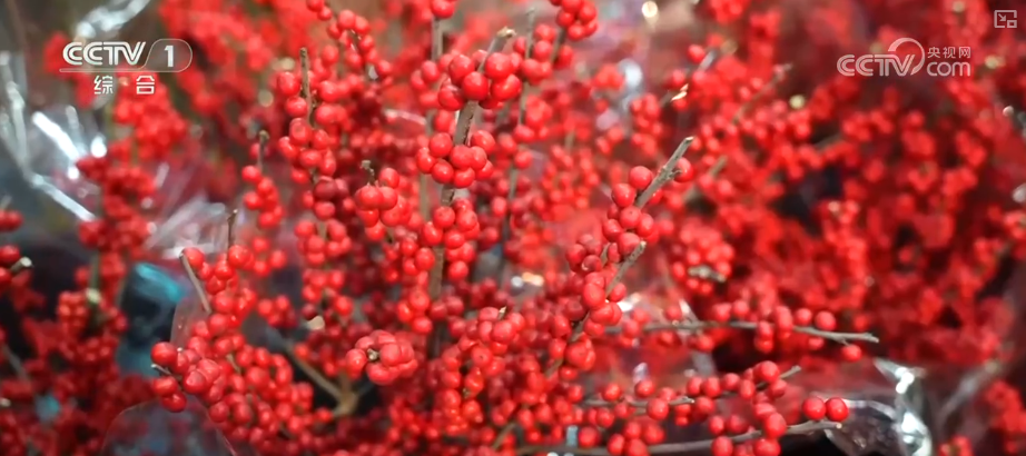 而在云南昆明斗南花市,顏色火紅的北美冬青也是春節(jié)的暢銷品。過去依靠國外進口,如今隨著國產(chǎn)北美冬青大量上市,價格更加親民,銷量也快速攀升。