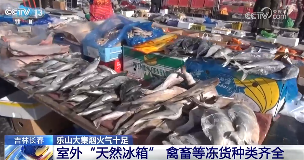 接著往里走,這里就是東北特色十足的生鮮凍貨區(qū)了。長春的冬天,室外零下20多攝氏度,堪稱“天然大冰箱”。您看這凍魚、凍豆包凍得老硬了,還有凍梨、凍柿子,都是東北人節(jié)慶團圓必備的滋味,化透之后一口咬下去滿是汁水,清甜可口。