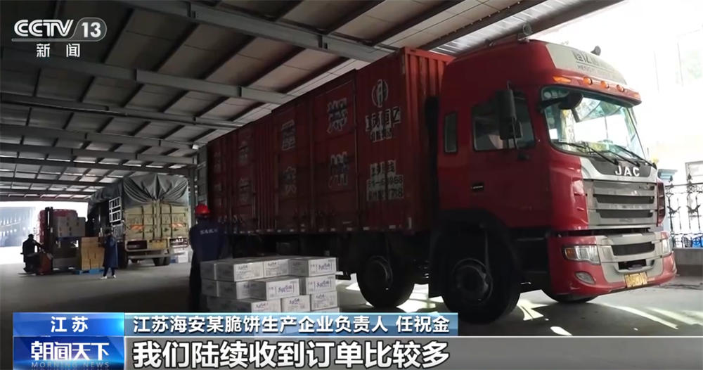 江蘇海安某脆餅生產(chǎn)企業(yè)負(fù)責(zé)人 任祝金:我們陸續(xù)收到訂單比較多,要忙到臘月十五左右。