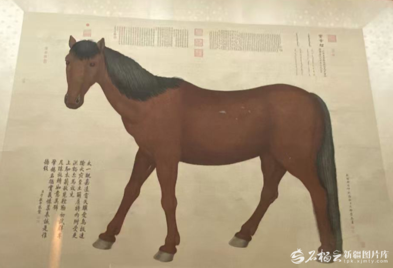 新疆博物館故宮廳展示的《寶吉騮圖》。石榴云/新疆日報記者 趙梅攝